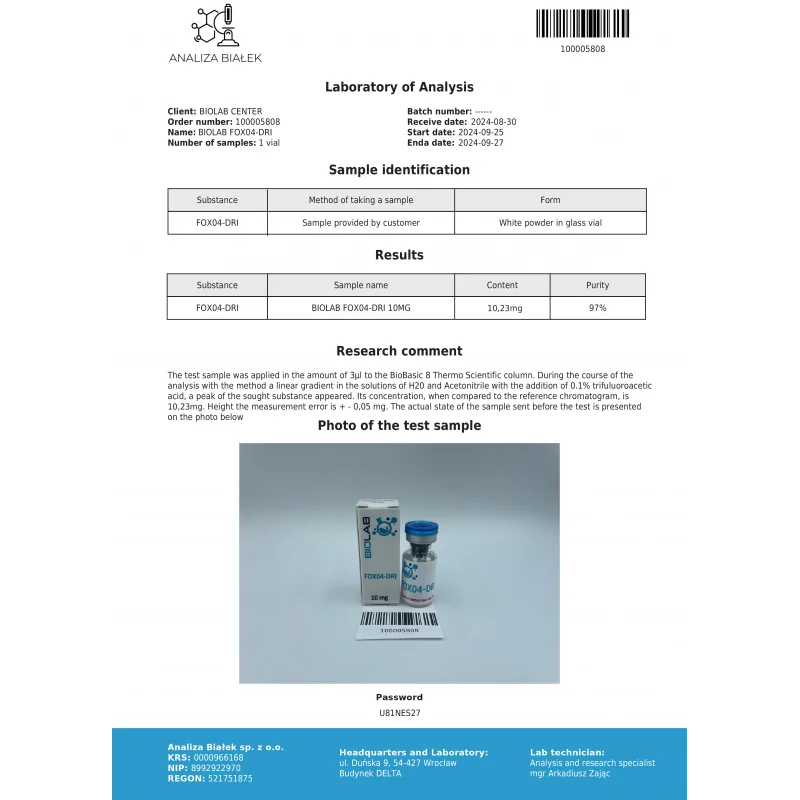 FOX04-DRI 10mg – Advanced Research Peptide for Cellular Senescence & Anti-Aging