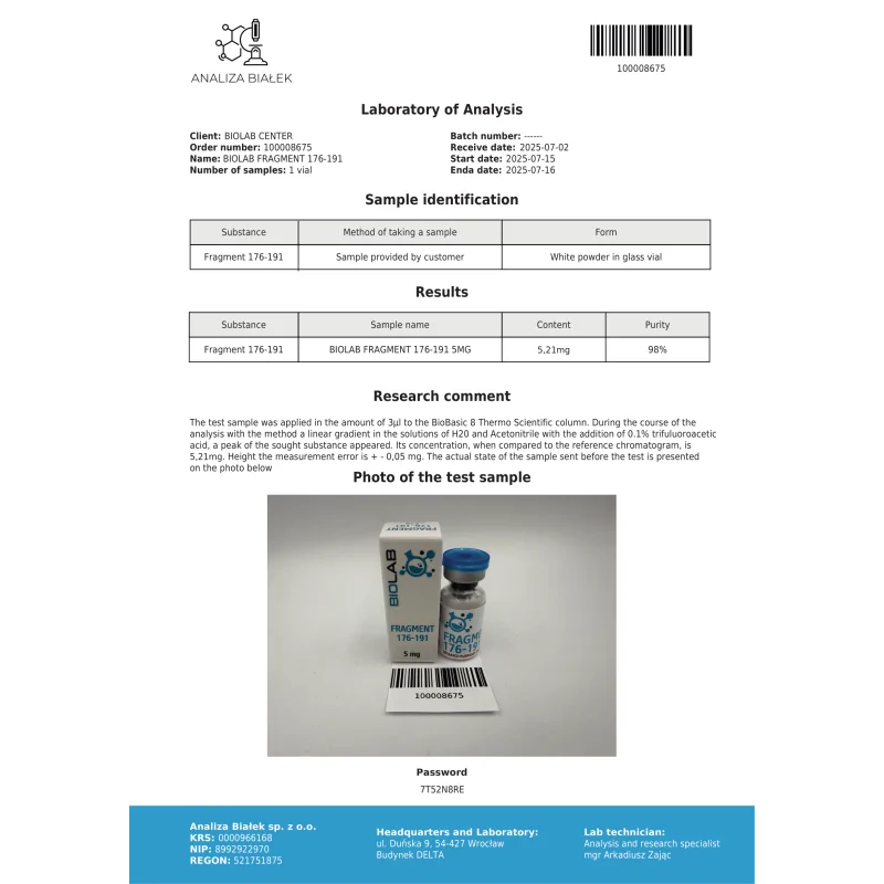 Fragment 176-191 is derived from the terminal region of the human growth hormone molecule but operates differently from its parent hormone. Researchers value this structural difference because it allows them to study fat-focused mechanisms without triggering systemic growth responses. This isolation of function is crucial for advanced metabolic studies where specificity is required.